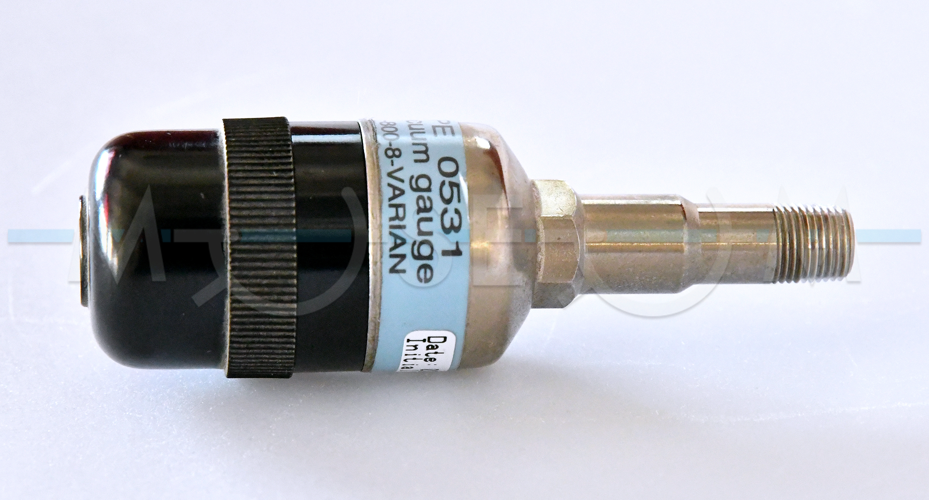 The exhibit is Varian 531 thermocouple tube sensor from ion trap GC/MS Saturn 2000R (Varian Inc.) manufactured in 2000. It contains two short resistance wires of different composition, which are crossed and connected together to serve as a heater and a thermocouple. Such design gives shock resistance and provides the minimum mass required for fast response. The gauge’s main purpose was to enable the diffusion pump controller to detect gross leaks and foreline pump failure. The gauge also indicated that the vacuum system has been pumped down to the diffusion pump’s required operational pressure. It measured vacuum pressures in the 2 Torr to 1 x 10-3 Torr range.